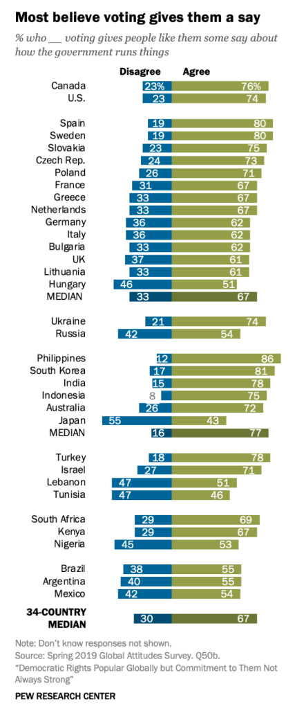 In addition to general satisfaction with democracy, Indians are satisfied that voting gives them a say: