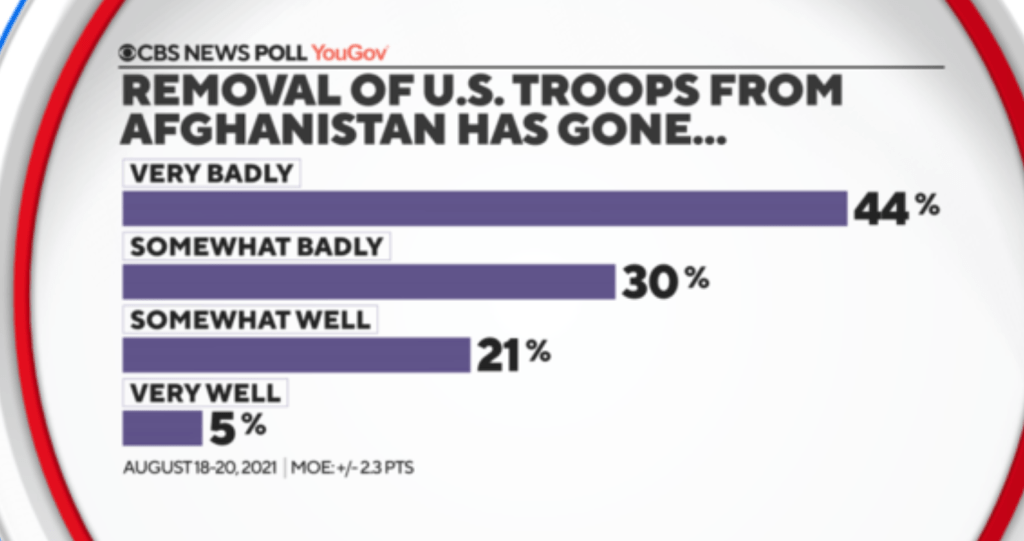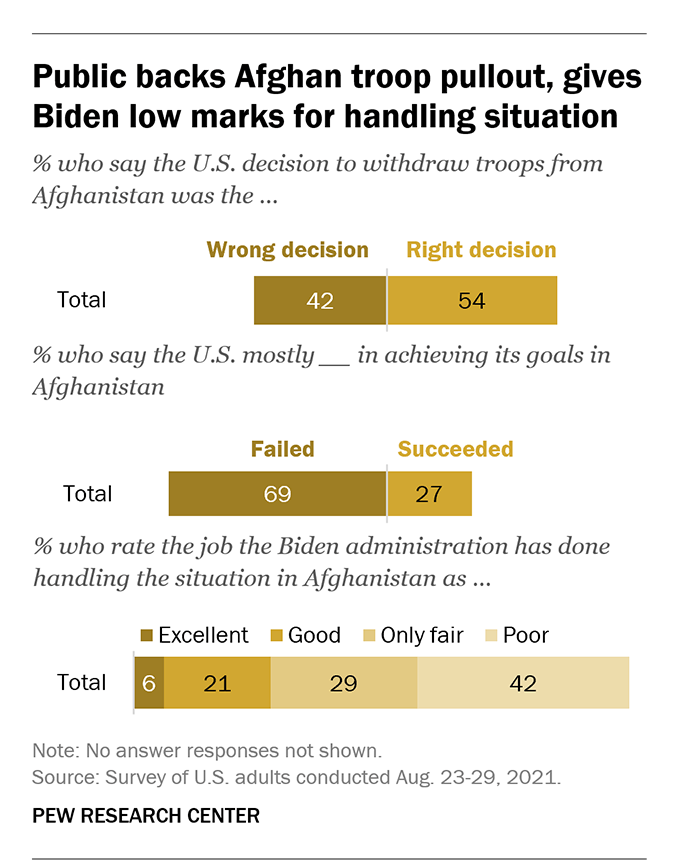 What has the US public thought about the withdrawal from Afghanistan? Nathaniel Rakich had a valuable overview in FiveThirtyEight on August 20, 202 of polling toward the Afghanistan withdrawal in the US, Frank Newport at Gallup has a summary of both recent and past surveys, and Amber Phillips looks at trends since 2002 in the Washington Post.