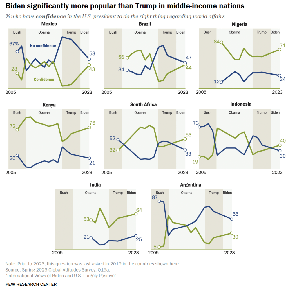 Pew has another excellent survey out looking at a variety of countries’ public opinion toward the US. Luckily this one includes India. What do Indians make of the US and Joe Biden?